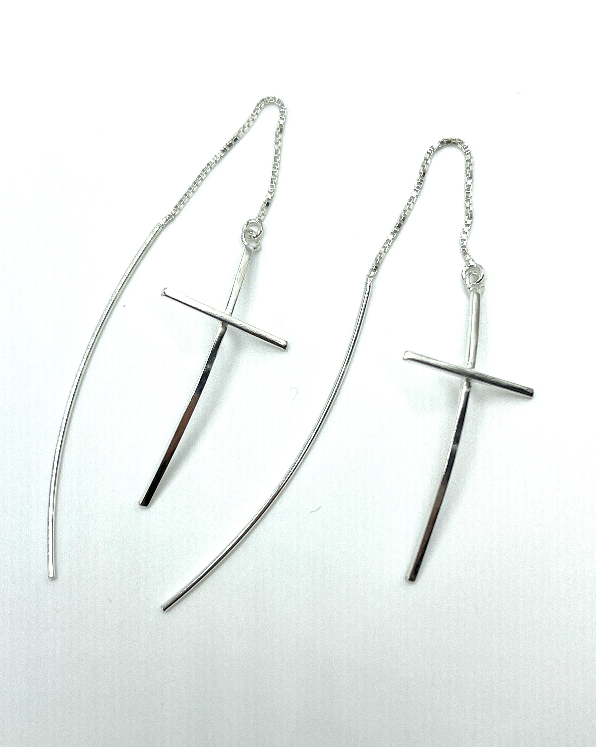 These 925 Sterling Silver Large Cross threader earrings designed for women, featuring Christian symbolism, a cross, making them suitable as faith-based religious jewellery. These earrings could be a thoughtful and meaningful gift for someone who appreciates Christian symbolism and values their faith.