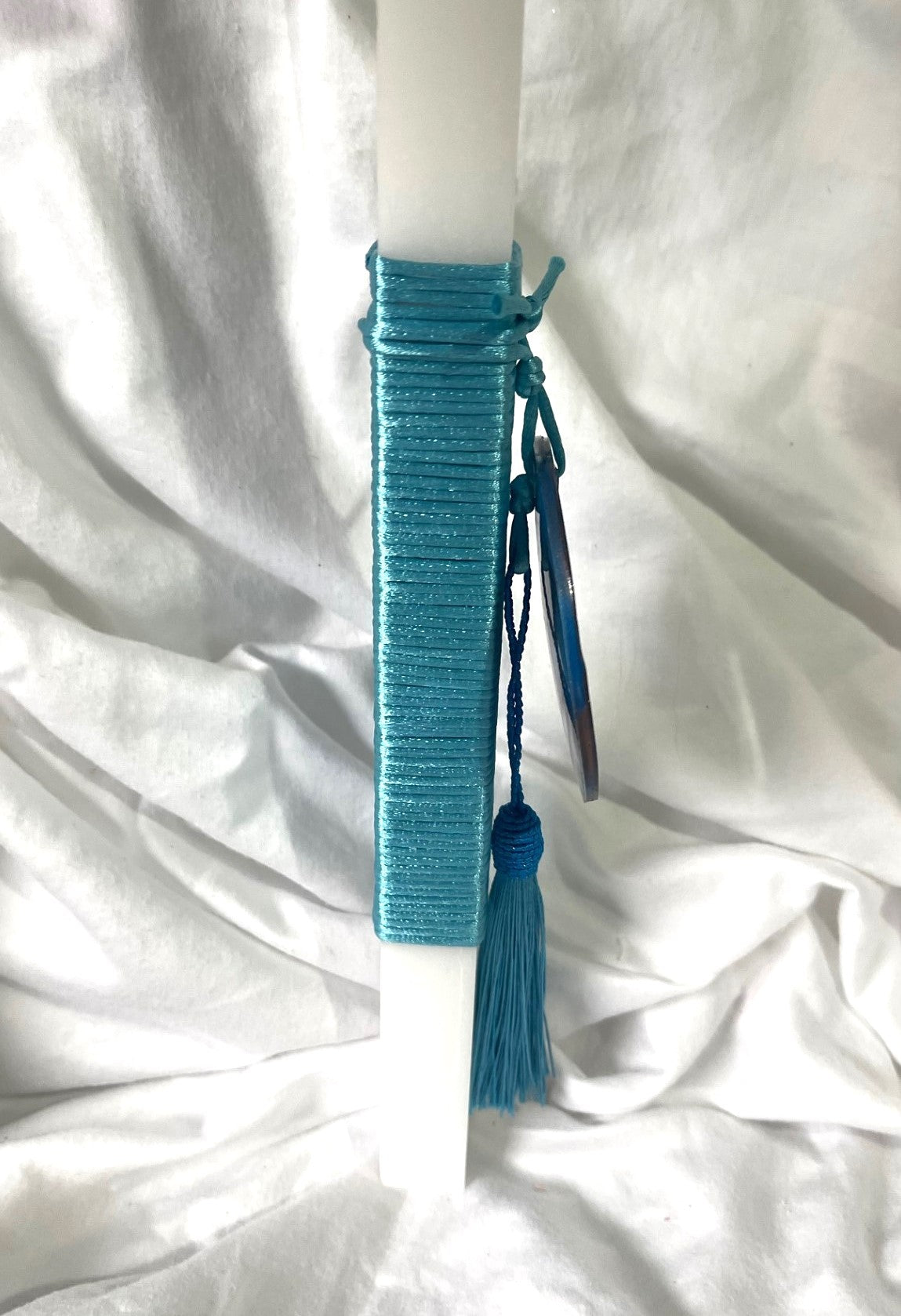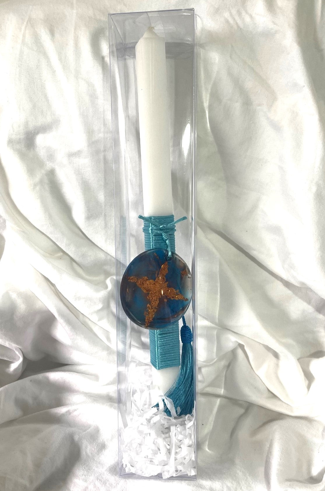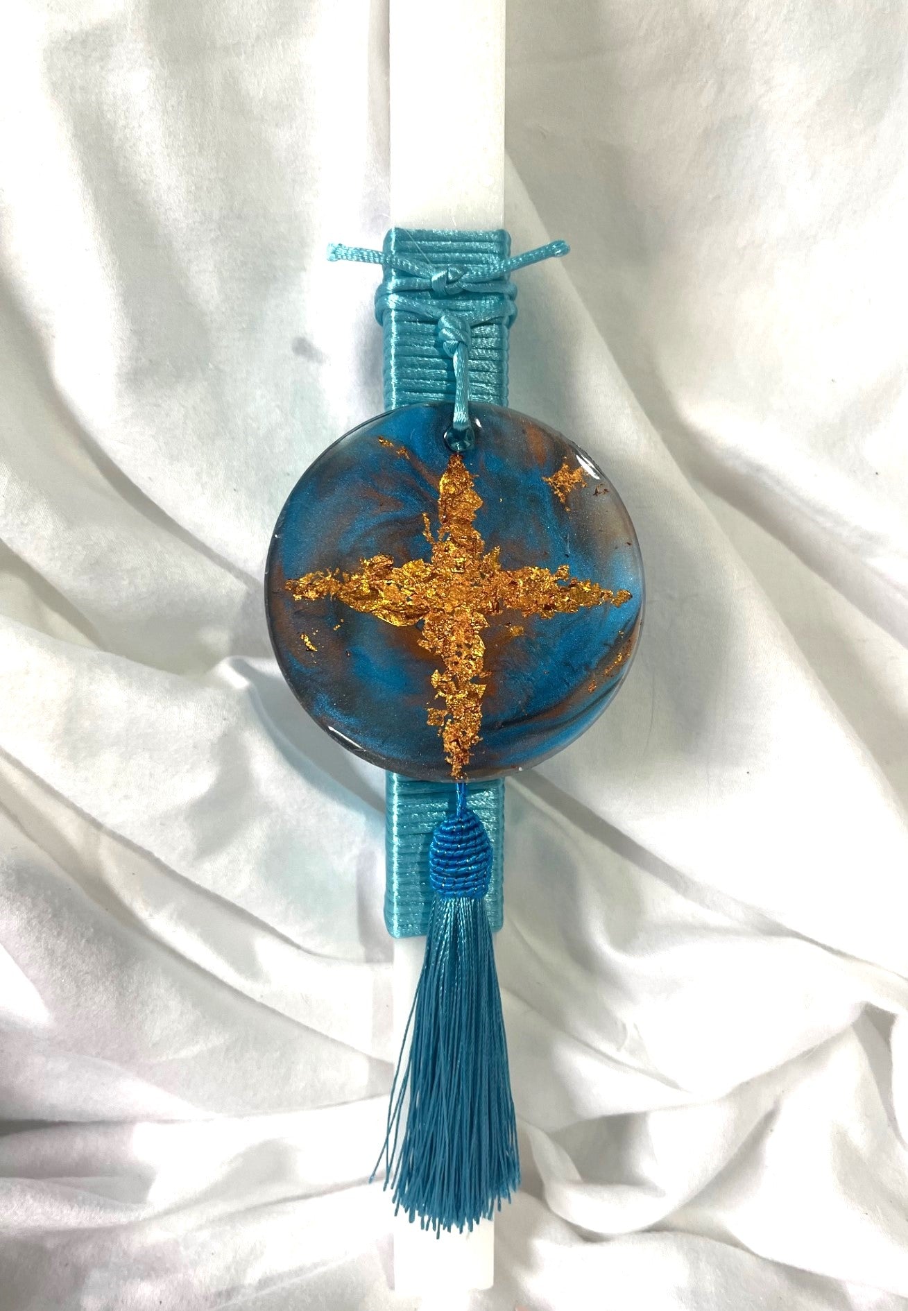 Blue/ Copper Resin Cross Square Palm Sunday / Lambatha Orthodox Easter Candle 40cm (LARGE)