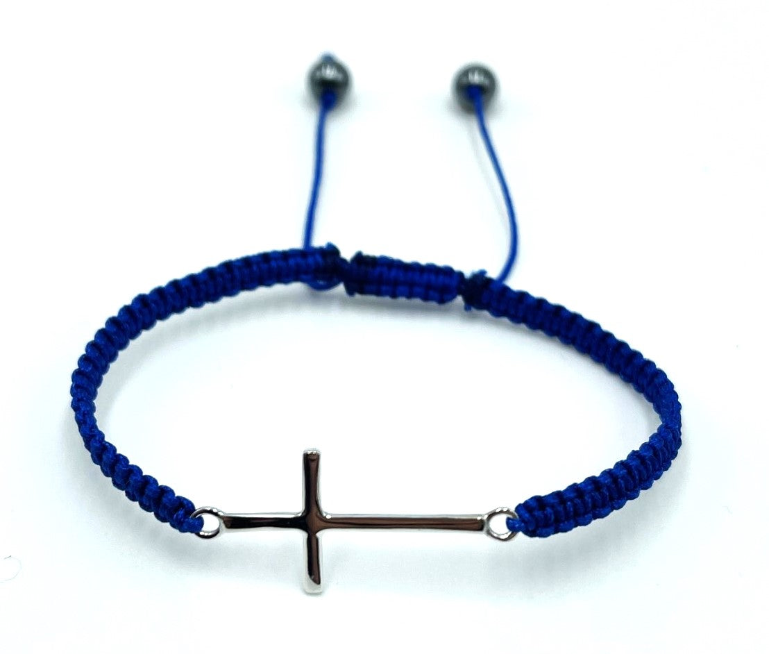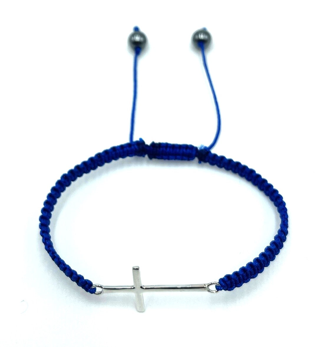 Blue Cross Woven Bracelet - Large (Unisex) - 925 Sterling Silver