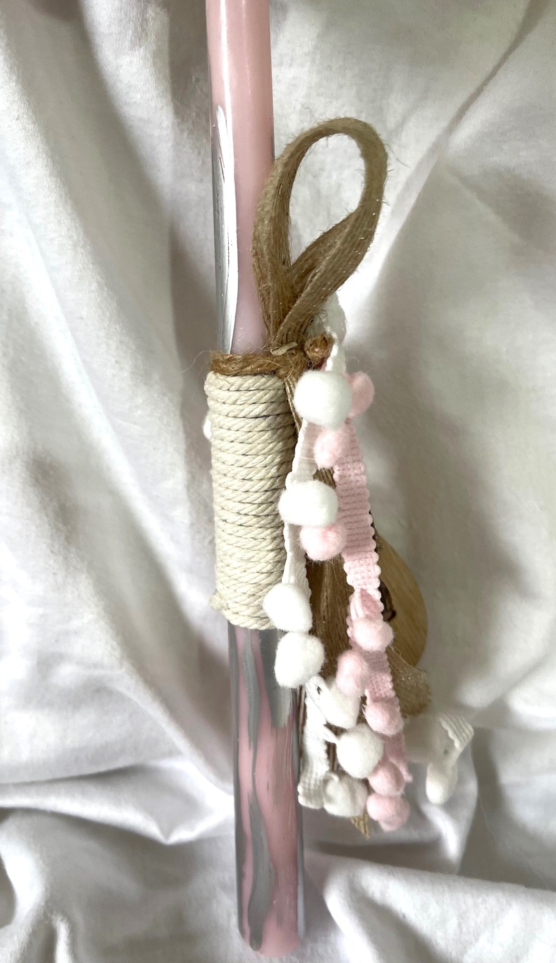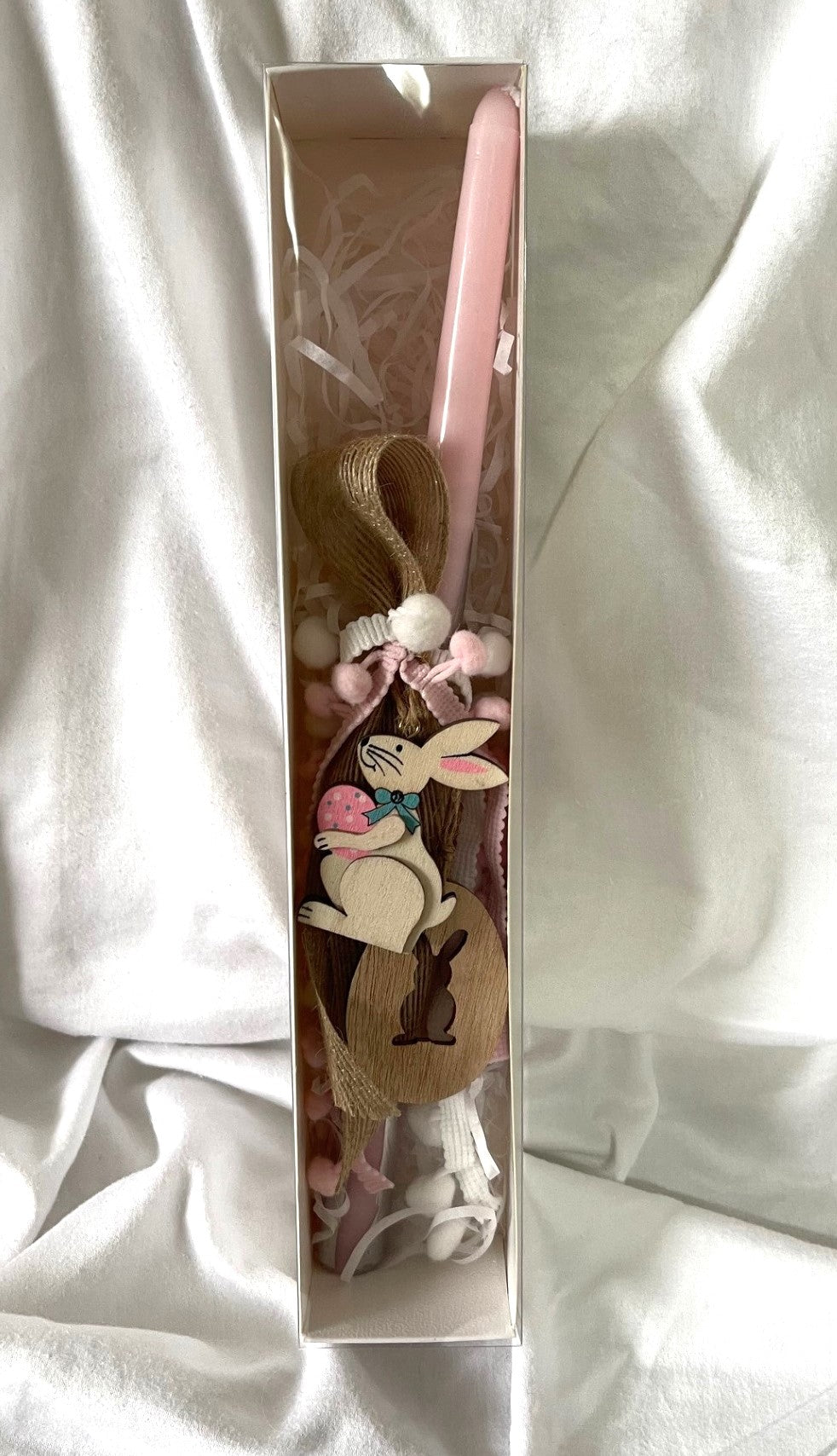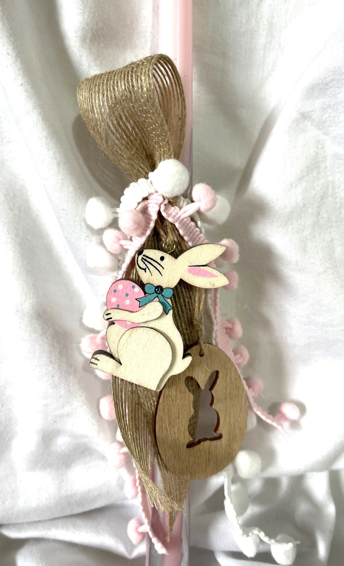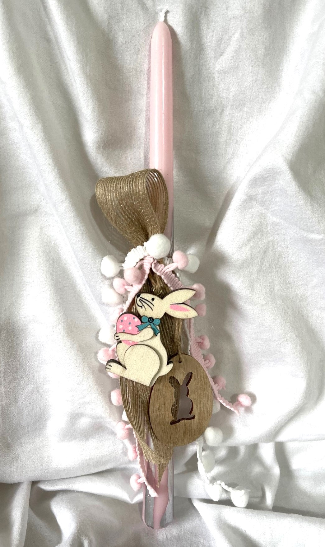 Wood Bunny (Pink) Lambatha Orthodox Easter Candle 30cm