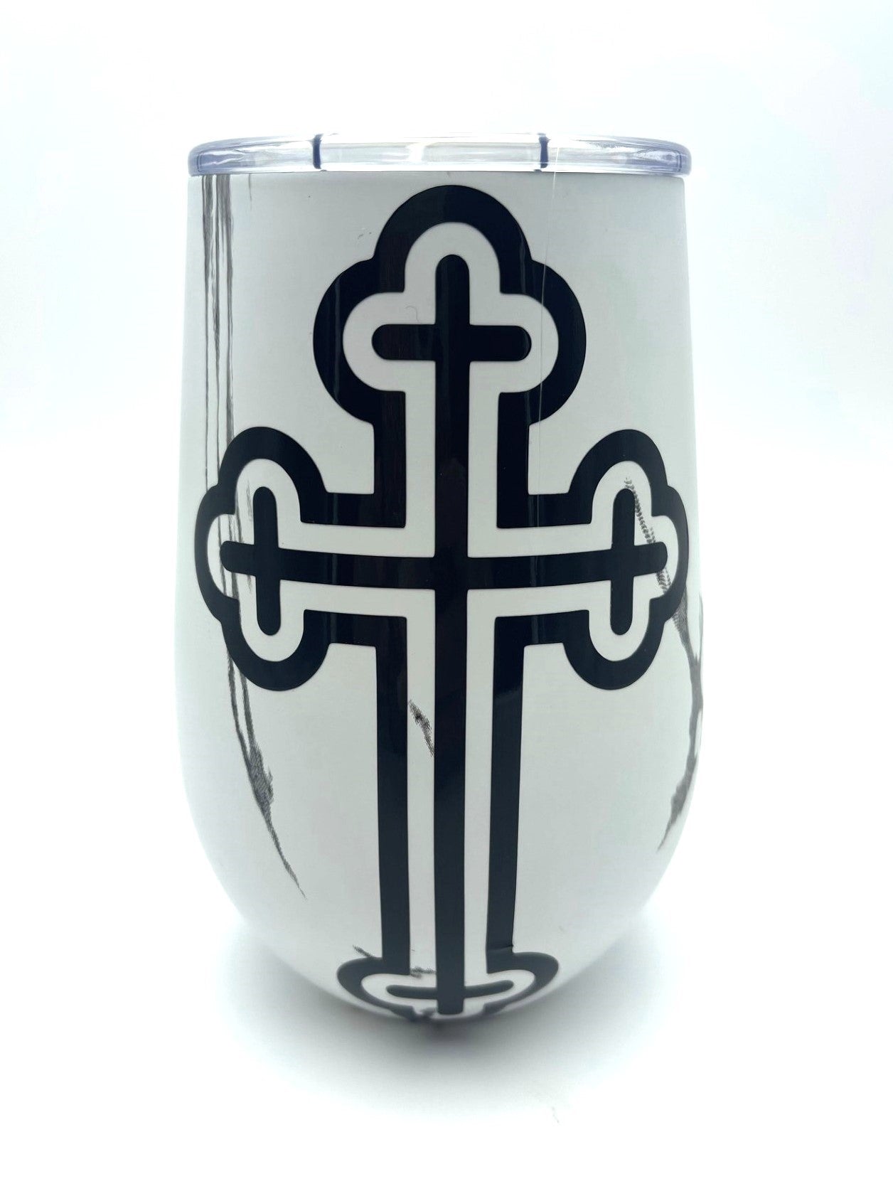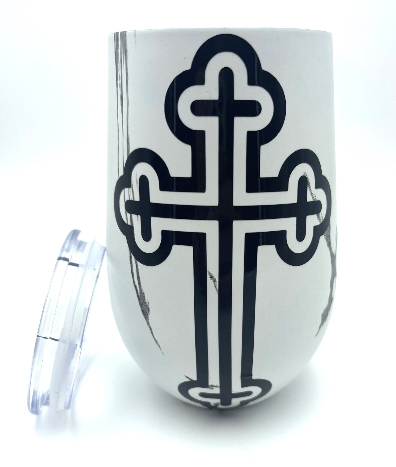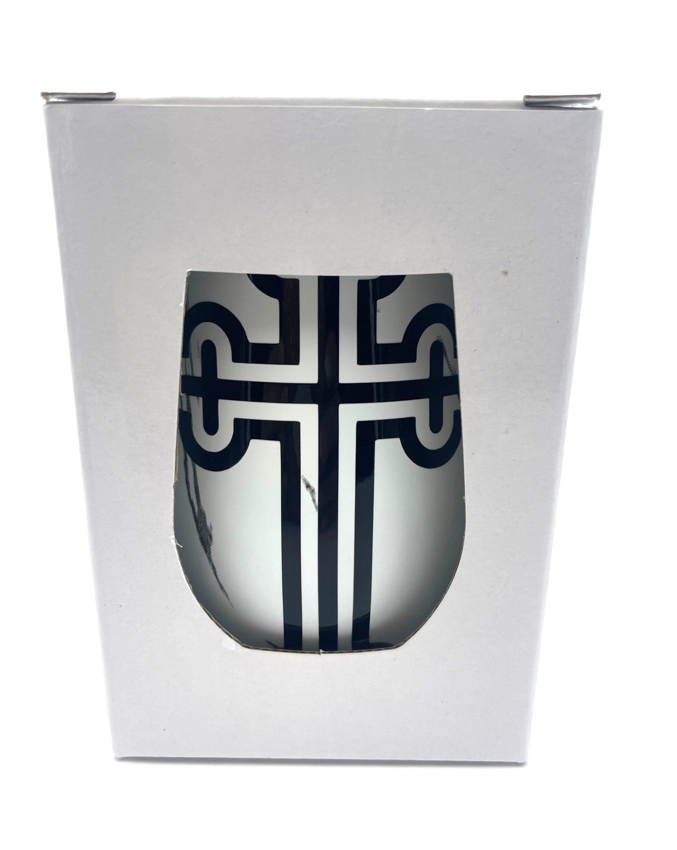 Religious Candle in Mug - Black Cross (White Marble) (J'Adore inspired)