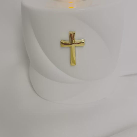 300 Day Lumada Electric Candle. Comes in a choice of Red or White and Gold embellished with a gold cross (Except the Gold option).
