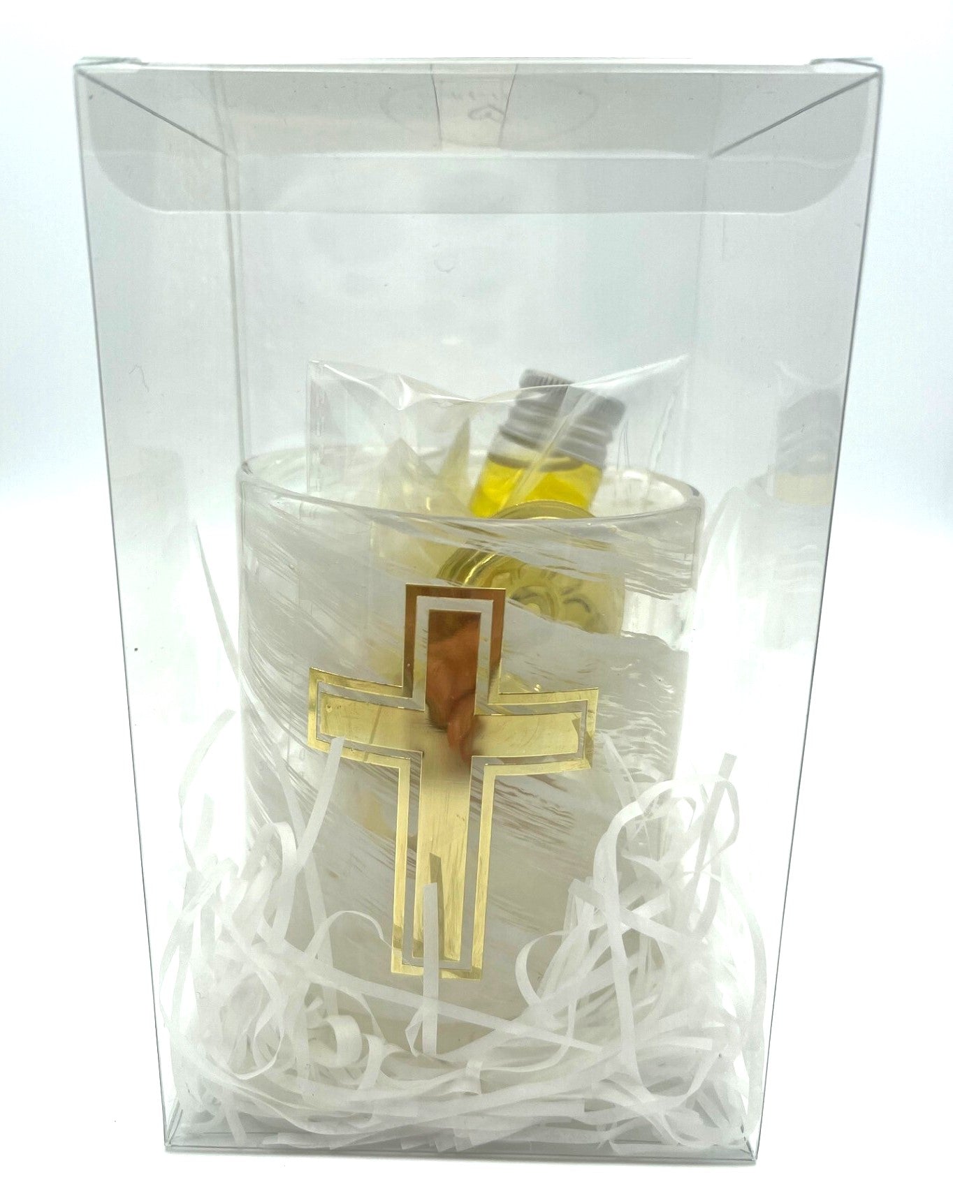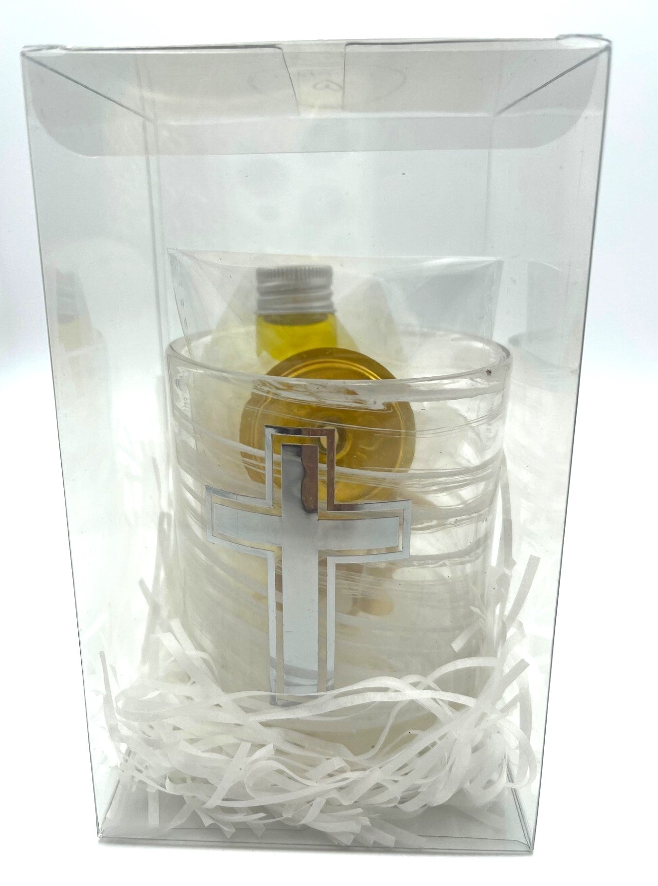 The oil used symbolises the infinite mercy of God and is derived from the Greek word for oil – έλαιον – meaning mercy. The flame is a reminder that Jesus Chris is the light of the world and illuminates our souls.