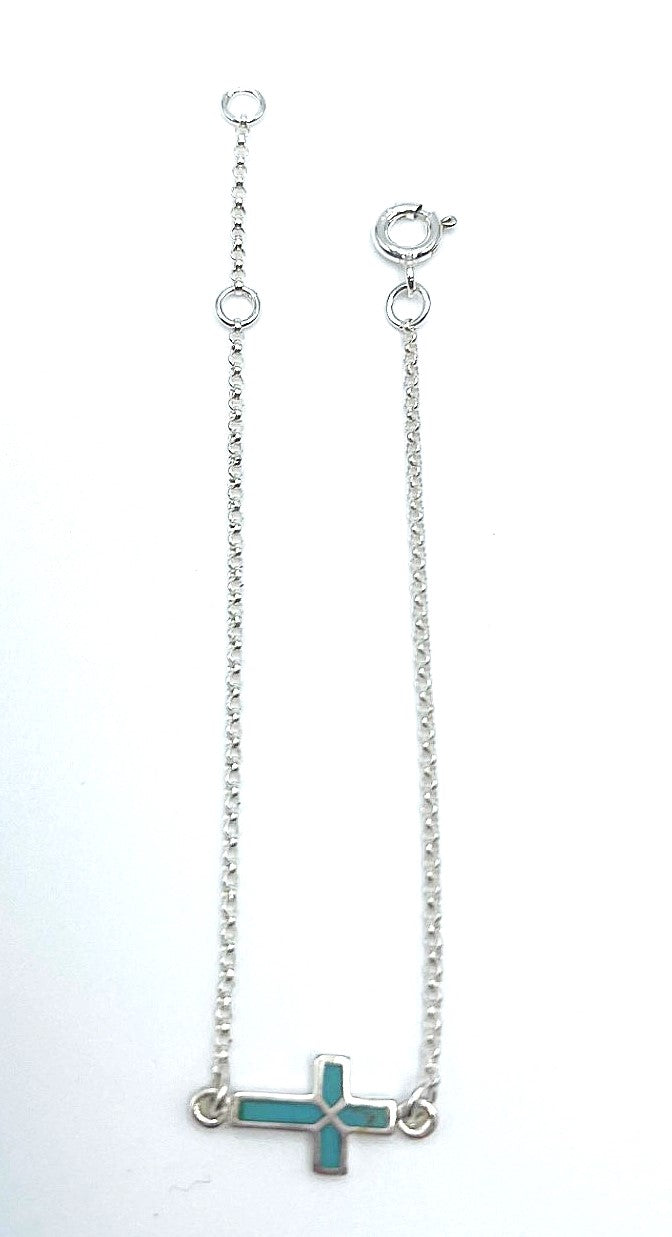 These are very pretty and petite resin cross bracelets, are a perfect gift for young girls or adults who like a little splash of Aegean Blue. Perfect when layering with multi bracelets are sweet and simple on its own.