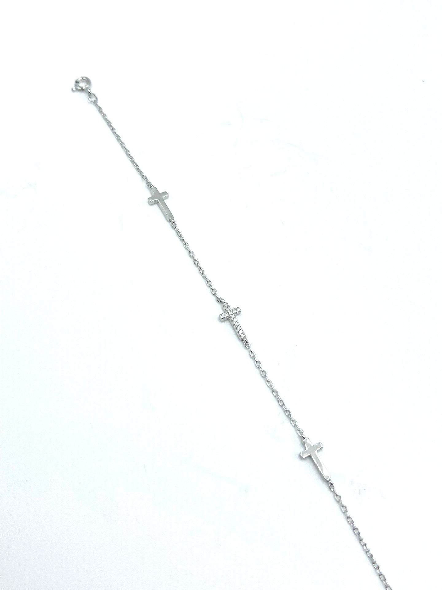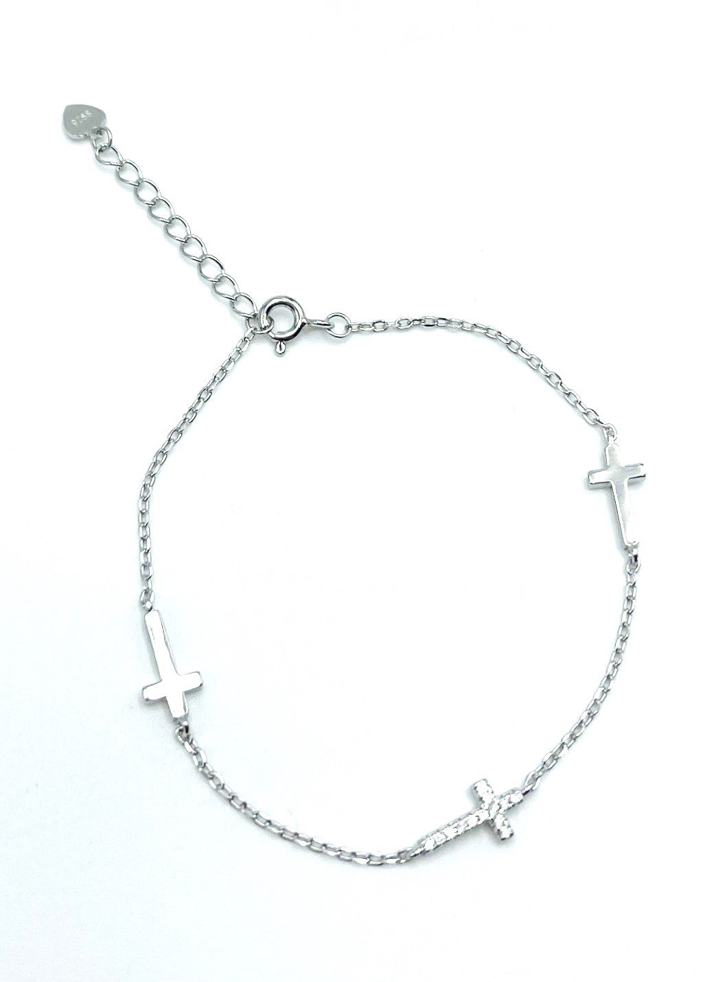 925 Sterling Silver Bracelet, Trinity Side Crosses.