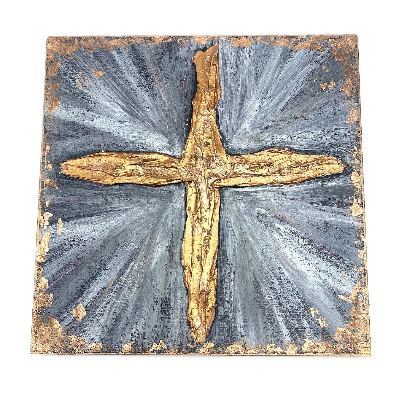 These handmade wall hangings are embellished with a 3d Cross on a wood canvas. They have foiling for that extra sparkle.
